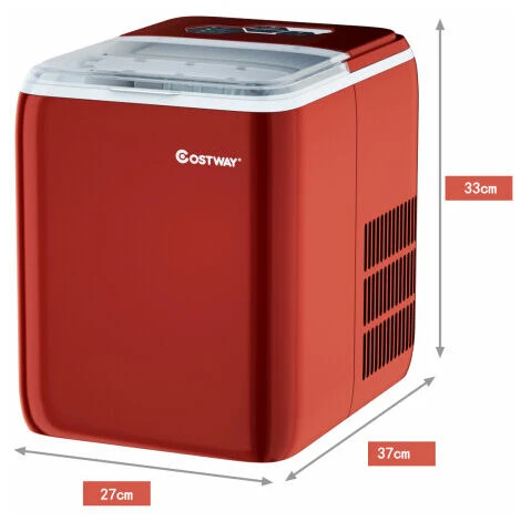2.6L Portable Ice Machine W/ Ice Yield 20kg per Day 8.5 Mins per Cycle Self-Cleaning Home Bar Office Red Description