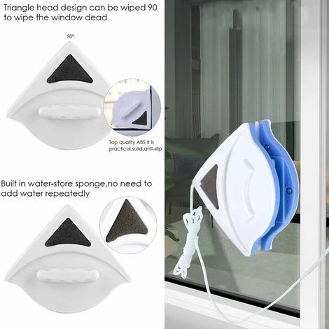 Wipe one side, clean two sides , this magical double-sided wiper doubles the efficiency with half the effort Sponge with built-in water reservoir, no need to refill water repeatedly Safety lanyard, the fall arrest rope around the po ignet, safe and firm narrow area Reach and clean without dead corners Ergonomic handle Rubber strips clean more easily Wash and dry both sides of windows At the same time, widely used for sliding doors, windows, vehicle windows, shower screens, mirrors, all glass surfaces…