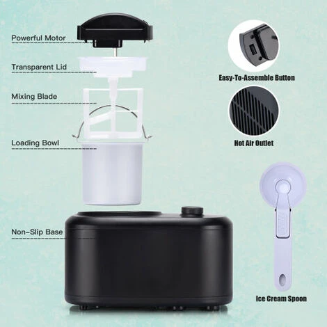 - Easy To Clean: Since smooth ABS surface, the daily maintenance is easy to finish with a wet towel. In addition, all non-electric parts are detachable for safe cleaning under water, such as transparent lid, mixing paddles and 1L freezer bowl. And these parts are easy to assemble for reuse.