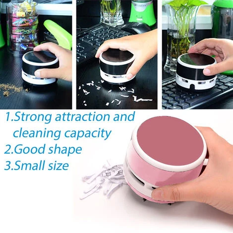 Product description Material: ABS + nylon brush Size: 8*6cm Color: blue, black, pink Scope of application: desktop, keyboard, car, etc. Package Contents: 1*Desktop Vacuum Cleaner 1.【COMPACT PORTABLE DESIGN】- 8*6cm compact size means this desktop vacuum cleaner fits anywhere! Keep one in your office, one in your car, and one at home. Excellent computer vacuum cleaner and for cleaning tablecloths, windowsills and car seats, even kitchen and bathroom drawers. 2.【POWERFUL SUCTION】- 3V high speed centrifugal fan makes this mini desktop vacuum small, but mighty! Use it to quickly and quietly clean up crumbs, dust, pet hair, seeds, gum residue, confetti, ash and just about anything. 3.【QUIET OPERATION】- The mini vacuum cleaner is designed to be quiet. Count on its noise reduction technology so you won’t disturb others or damage your hearing. 4.【No Batteries Required】- Uses two AA batteries (not included), which means there are no cords or wires to worry about. Just pick it up and turn on the keyboard vacuum with the flick of a switch to clean up messes in a snap! 5.【UNIQUE AND THOUGHT-OUT GIFT】- Its modern design and practicality make it a perfect gift for anyone! Get a mini handheld vacuum for anyone with a computer, pet, or car.