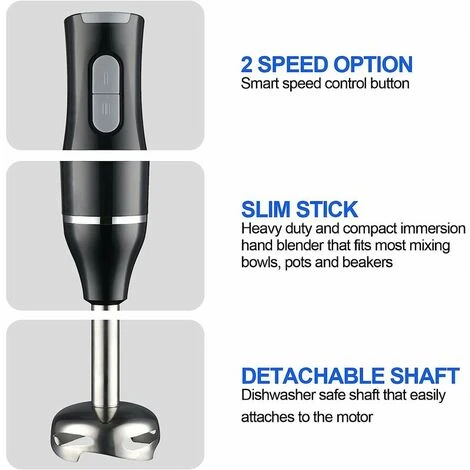 【Lightweight and ergonomic body to fit perfectly in any hand.】The Hand Blender is very comfortable to use because the handle has been designed to meet the ergonomic needs of both right-handed and left-handed people. Its soft-touch handle, non-slip coating and large, easily accessible buttons ensure comfort and an effective grip. Finally, its light weight makes it easy to use.