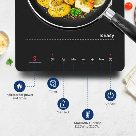 - 【Efficient and Convenient】One-button adjust the Max/Min function. You can prepare food quickly. This potable induction hob is equipped with an 8-hour timer and a child lock so that keep your food warm for a long time. IsEasy single induction hob makes cooking easier.