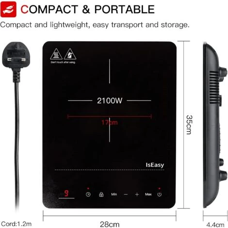 - 【Simple applications & Portable Design】IsEasy induction hob is not only perfect for cooking in the kitchen,but also easy to carry due to its lightweight and compact design. Portable induction plate suitable for camping and business, ideal for cooking at home or outdoors, easy to store and cleaning.