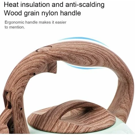 Safety design: The handle of the kettle is made of heat-resistant material. The scald-proof wood grain handle and reversible nozzle cover ensure safety. The top is completely closed and no steam comes out of the top.