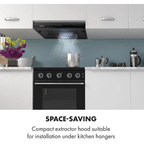 The compact one for the small hut: the Klarstein Capannina extractor hood ensures clean air in the kitchen, free of steam and odours, even under limited space.