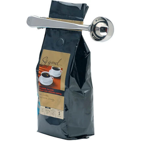 The spoon measures precisely for the perfect serving of coffee each time and the long handle has a clip function that is strong and secure to keep your open bag of coffee fresh for a full flavoured brew everytime.