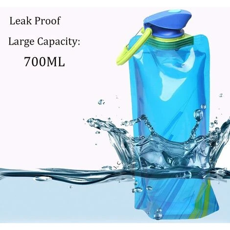 UNIQUE DESIGN: When empty , this one can The water bag can be folded, rolled or flattened and stands upright when full. Plus, the hook design makes it easy to carry around your hands, backpack.