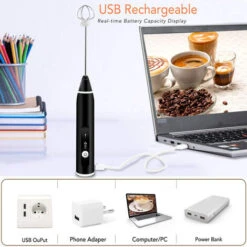 Rechargeable Electric Milk Frother With For Coffee, Matcha, Latte Cappuccino, Hot Chocolate