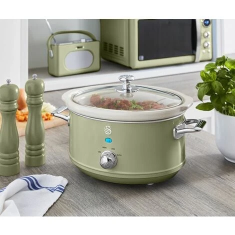 Benefiting from three settings, low, high and automatic, the Swan Retro 3.5L slow cooker has a removable ivory colour ceramic pot, which can be taken straight to the table for serving. The low setting gently simmers food, while the high setting is great for cooking beans or pulses, as well as baking winter dishes such as crumbles. The automatic setting starts a dish on the high setting, which can be used to brown meats, before switching to low for the remainder of the cooking time, perfect for stews. An included 32-page recipe book provides inspiration for creating a versatile menu of tasty meals, while the handy keep warm function will keep dishes at the ideal serving temperature.