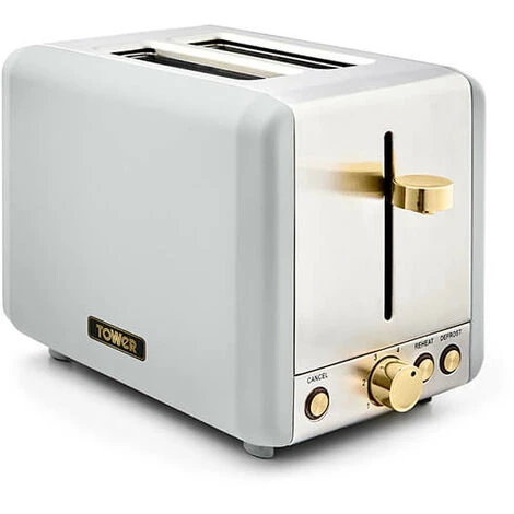 The Tower Cavaletto optic white 2 slice stainless steel toaster has a contemporary matt optic white finish with elegant gold accents adding style to your kitchen and fits in with the coordinating Cavaletto range (sold seperately).